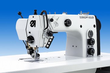 Besonders stark ist die Doppelsteppstichmaschine 274 bei kritischen Materialien wie Samt. Um hier ein kanten- und längengleiches Nähergebnis zu erzielen, ist sie mit einer "Hubhöhen-Niveauverstellung" ausgestattet. Damit kann der Nähfuß in eine Position gebracht werden, in der er das Nähgut sicher hält, ohne den Flor zusammenzupressen. Für einen verschiebungsfreien Stofftransport und spannungsfreie Nähte sorgt neben dem Nadeltransport insbesondere der extrem dicht an der Nadel arbeitende Walzen-Obertransport. Mit integriertem Nähantrieb.