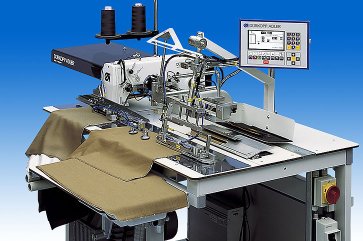 This sewing unit fells the left fly pieces of your trousers. In addition you can also attach the right fly pieces. A further application is attach and notch wing pockets to front trousers. You only have to load the workpieces and all further steps are executed automatically. With this sewing unit you will increase your productivity. Even less experienced users can achieve excellent sewing results due to the easy operation. Performance: Sewing of approx. 2000 left or right fly pieces in 480 min. (1000 trousers l / r flies)