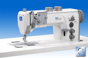 Single-needle lockstitch flat bed machine with bottom feed, needle feed and alternating feet and a maximum stitch length of 12 mm. The 867-190322 CLASSIC is equipped with automatic sewing foot lift, an integrated second stitch length, an integrated second thread tension, quick stroke adjustment, automatic backtacking, thread trimmer, oil level warning lamp and a large vertical hook. With the M-TYPE series a vision has become reality - a platform for medium heavy duty machines creating a new dimension of functionality and flexibility for all kinds of medium -weight applications. The lockstitch flat bed machine class 867, the first model of M-TYPE series, will set new standards. Above all, the modern design allows an enlarged clearance under the arm as well as a better view on the sewing area. The highly efficient sewing parameters combined with a great variety of equipment make the 867 an ideal operating means for universal use.