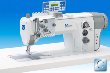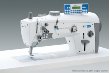 Single needle lockstitch flat bed machine with DA Direct Drive, bottom feed, needle feed and alternating feet, electromagnetic thread trimmer, add. electropneumatic switchable thread tension, integrated 2. Stitch length, electropneumatic seam back tacking and sewing foot lift, electropneumatic quick stroke adjustment, integrated sewing light (LED)