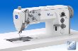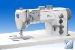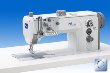 Single needle lockstitch flat bed machine with bottom feed, needle feed and alternating feet, electromagnetic thread trimmer, electropneumatic seam backtacking and sewing foot lift, DLC coated needle bar, walking foot bar and presser foot bar (DLC = diamond like carbon)