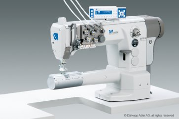 · M-TYPE machine head 869-M PREMIUM with programmable setting elements and approved sewing technology (L-hook / standard thread trimmer)