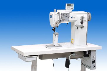 With its outstanding performance parameters this series is setting new standards as regards stitching operations in the shoe production. In conjunction with the needle feed and the driven roller foot the double feeding of the wheel bottom feed ensures quiet and smooth sewing with exact stitch length, even when sewing over extremely thick spots. The manual back-tacking device ensures a "stich-in-stich" back-tacking.The special sewing kinematics allowing to use a thread variety unrivalled so far makes this series a promising operating means of universal use.Automatic thread trimmer, presser-foot lift and back-tacking with push-button are decisive factors for a high productivity.