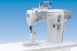 Single needle lockstitch post bed machine with double intermittent wheel feed, needle feed, driven top roller, automatic thread trimmer, foot lifter and back-tacking. “Classic” version.