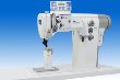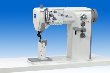 Single needle lockstitch post bed machine (right post) with driven roller presser and bottom feed, with electromagnetic thread trimmer. "Classic" version