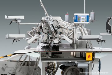 756 B代表用于直袋及斜袋口的高性能技术。 缝纫单元配备有用于输送嵌条的全自动装置。 根据应用的不同,自动送料可以从右边(裤子)或从左边(夹克)开始。 作为选择,缝 纫单元可以配备自动从右侧和/或左侧送入其他部件的功能,例如 口袋盖和口袋布。 嵌条两端的自动切割系统进一步提高了缝纫单元的生产率。