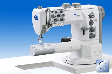 对工业纺织品、制鞋、皮具、箱包和类似产品领域的三维形状或管状工件的专业缝制加工对缝纫设备有着极高的要求。869 型单针或双针筒式底板缝纫机采用垂直大旋梭,具有极为纤细的筒式机臂,外加